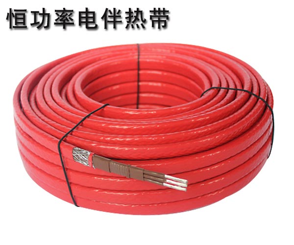 恒功率電伴熱帶是采用合金加熱絲,輸出功率恒定,電源母線為兩根(三根)平行絕緣銅線,在絕緣層上纏繞電阻絲,并將電熱絲每隔一定距離(即發熱節長)于母線連接,形成連續并聯電阻,母線通電后,各并聯電阻發熱,因而形成一條連續的加熱帶。恒功率電伴熱帶的加熱功率不隨環境溫度的變化而變化,是恒定值。恒功率電伴熱帶單位長度發熱量恒定,電伴熱帶回路須配有溫控器來監控器溫度。