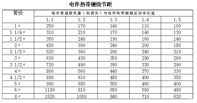 首先,我們需要考慮每米管道的熱損與電伴熱帶的功率,當管道單位長度的散熱量(熱損失)大于電伴熱帶額定功率時,即比值>1時,按下述方法敷設: